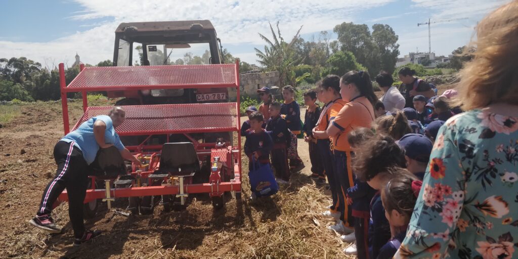 Later on, it was the turn of Dingli Primary School students and educators to visit Zabbar Primary School. Together both schools spent some time in two fields at Zabbar. The farmer explained and showed us various products, described and showed various equipment and machines used while cropping and also mentioned various problems the farmers encounter. The students had also the opportunity to plant broccoli and cauliflower in her fields. After, all students went to Zabbar Primary A school and Zabbar Primary A showed their secret garden to Dingli Primary School and also all the products that the school planted. There it was an opportunity for both schools to compare the crops of each school.